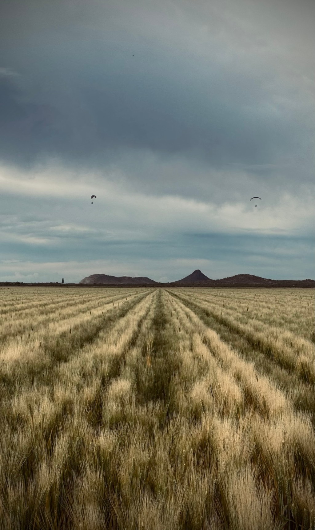 Like man’s own cheat to hold the title of “tallest building,” thin, pine-needle-like spires stretch and taper out from each of the grains. When it’s time, nature tests its children with a torrent of wind. Reminiscent of the sound of sizzling bacon, or perhaps the sound of an hourglass’s falling sand, the rye bends and flexes, producing a single-instrument orchestral performance of ambience.